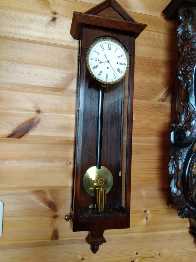 治療院近くの自宅にてビエンナ時計と呼ばれるゼンマイ式以前のメカニズムの時計を展示してます。
